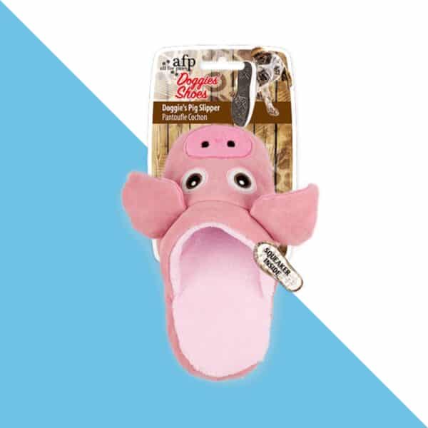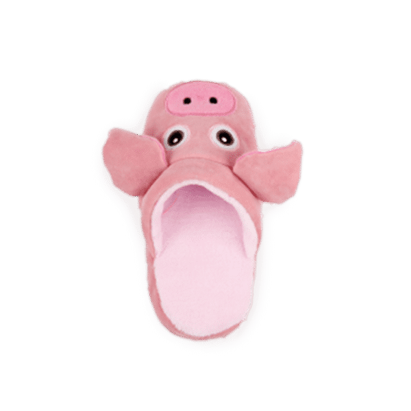 צעצוע מבד רך בצורת נעל בית ורודה עם פרצוף חזיר מתוק – כולל צפצפה בפנים למשחק מלא שמחה ואקשן. אידיאלי לכלבים שאוהבים צעצועים משעשעים וייחודיים 🐾