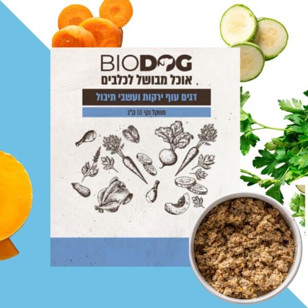 ביו דוג מזון טבעי דגים ועוף עם ירקות ועשבי תיבול ללא הקפאה – 10 ק״ג