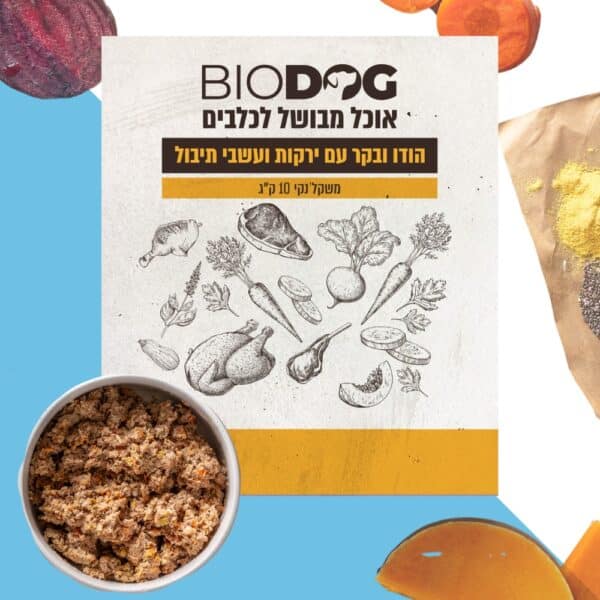 ביו דוג מזון טבעי הודו ובקר עם ירקות ועשבי תיבול ללא הקפאה – 10 ק״ג