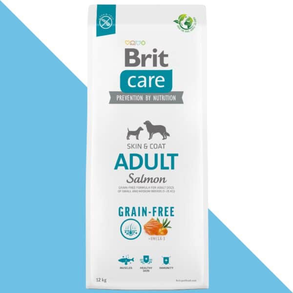 בריט קר סלמון ללא דגנים לכלב בוגר מגזע בינוני וקטן 12 ק"ג Brit Care