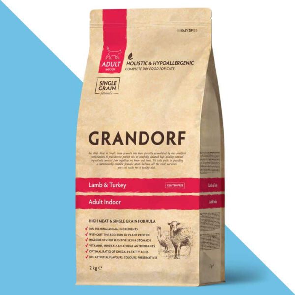 גרנדורף כבש והודו לחתולים בוגרים 8 ק"ג אינדור GRANDORF