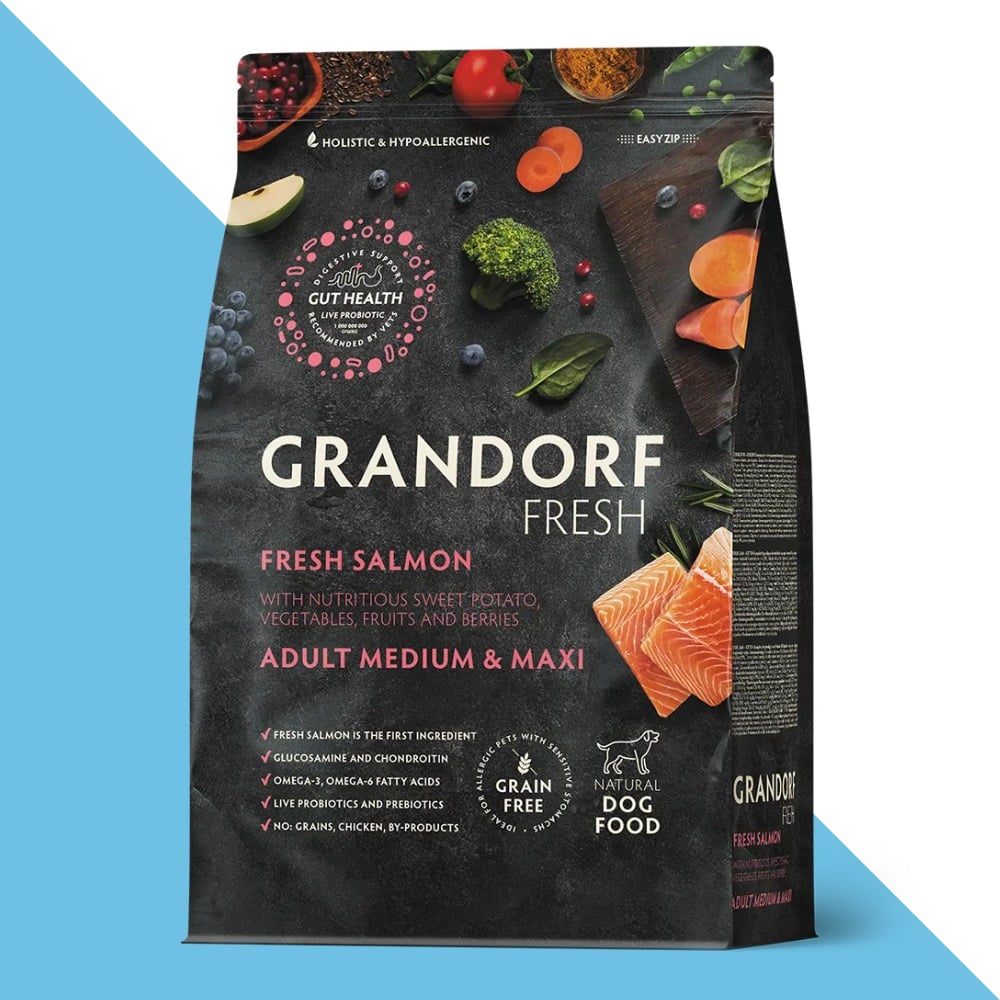גרנדורף פרש סלמון ובטטה לכלבים בוגרים מגזע בינוני וגדול – 10 ק"ג | Grandorf Fresh