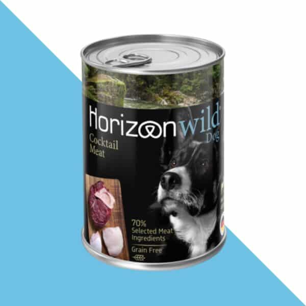 מעדן שימורי Horizon Wild מסדרת Cocktail Meat מביא לקערת הכלב שלך תערובת עשירה של בשרים מובחרים, במרקם פטה עדין ונעים לאכילה. עם 70% רכיבי בשר נבחרים וללא דגנים כלל, מדובר במזון איכותי המתאים במיוחד לכלבים בוגרים מכל הגזעים, גם לאלו בעלי רגישויות תזונתיות.