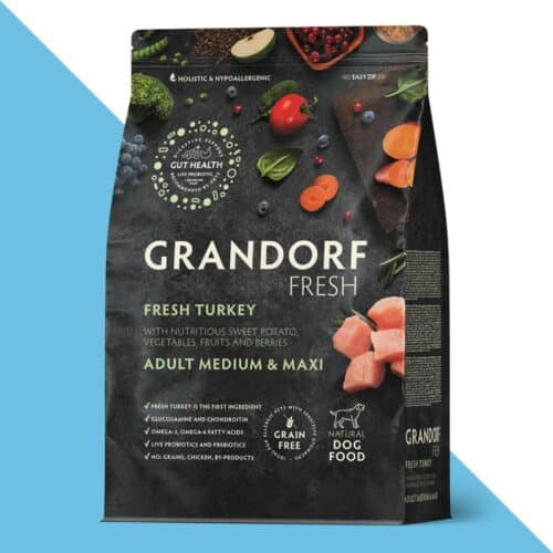 • גרנדורף שימורי בקר והודו לכלבים בוגרים 400 גרם GRANDORF
