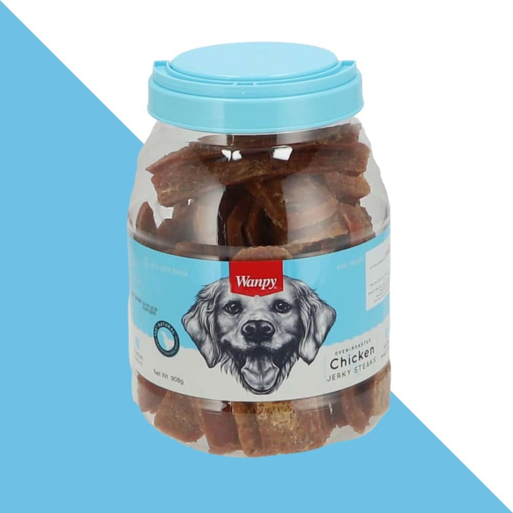וונפי צנצנת חטיפי סטייק ג'רקי עוף לכלב 908 גרם Wanpy