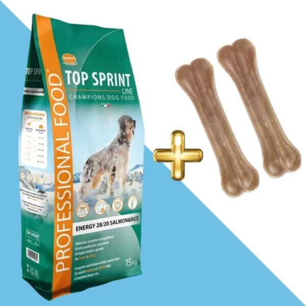 מבצע שווה במיוחד – טופ ספרינט סלמון + 2 עצמות דחוסות מעור בקר בגודל 20 ס"מ