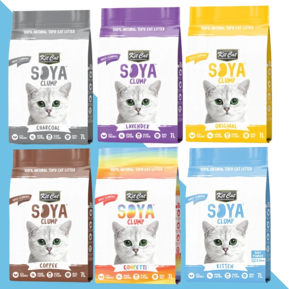מוצר ייחודי זה עשוי מהחלקים הבלתי מסיסים של פולי סויה הנמצאים בייצור חלב סויה. בדרך כלל החלקים הבלתי מסיסים הללו מושלכים בעיקר למזבלה, אך Kit Cat מחדשת מטרה שנייה לחומר ה"מבוזבז" הזה כדי לשמש כחול חתולים, ומציינת אותו כידידותית לסביבה.