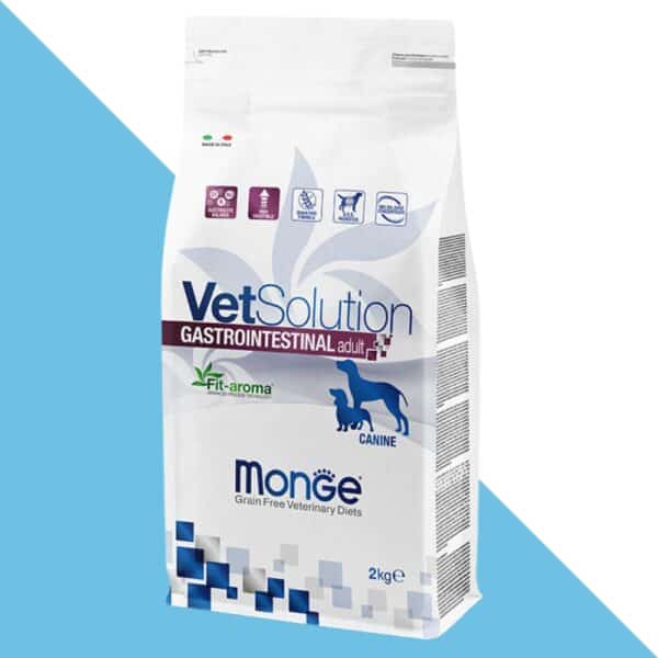 Monge Gastrointestinal פותח במיוחד כדי לתמוך במערכת העיכול הרגישה של כלבים בוגרים, להפחית שלשולים, להקל על הקיבה ולשפר את איכות החיים של הכלב, מבלי להתפשר על הטעם.