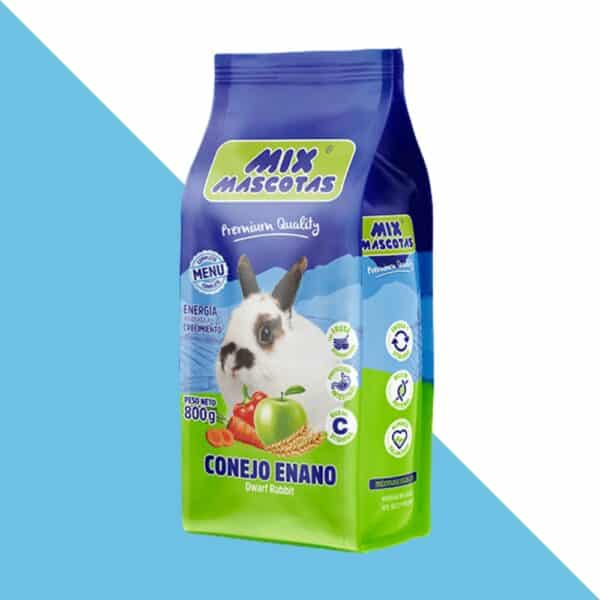 Mix Mascotas Conejo Enano הוא מזון יבש איכותי המותאם במיוחד לצרכים התזונתיים של ארנבים ננסיים – עם שילוב טבעי של ירקות, פירות, סיבים וויטמינים לחיים בריאים ומלאי אנרגיה.