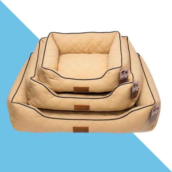 מיטה מפנקת ויוקרתית לכלבים, בעיצוב קלאסי בצבע בז’ אלגנטי עם תפרים מעוטרים. מעניקה לכלב שלך נוחות מרבית ומקום בטוח לנוח בו בכל שעות היום.