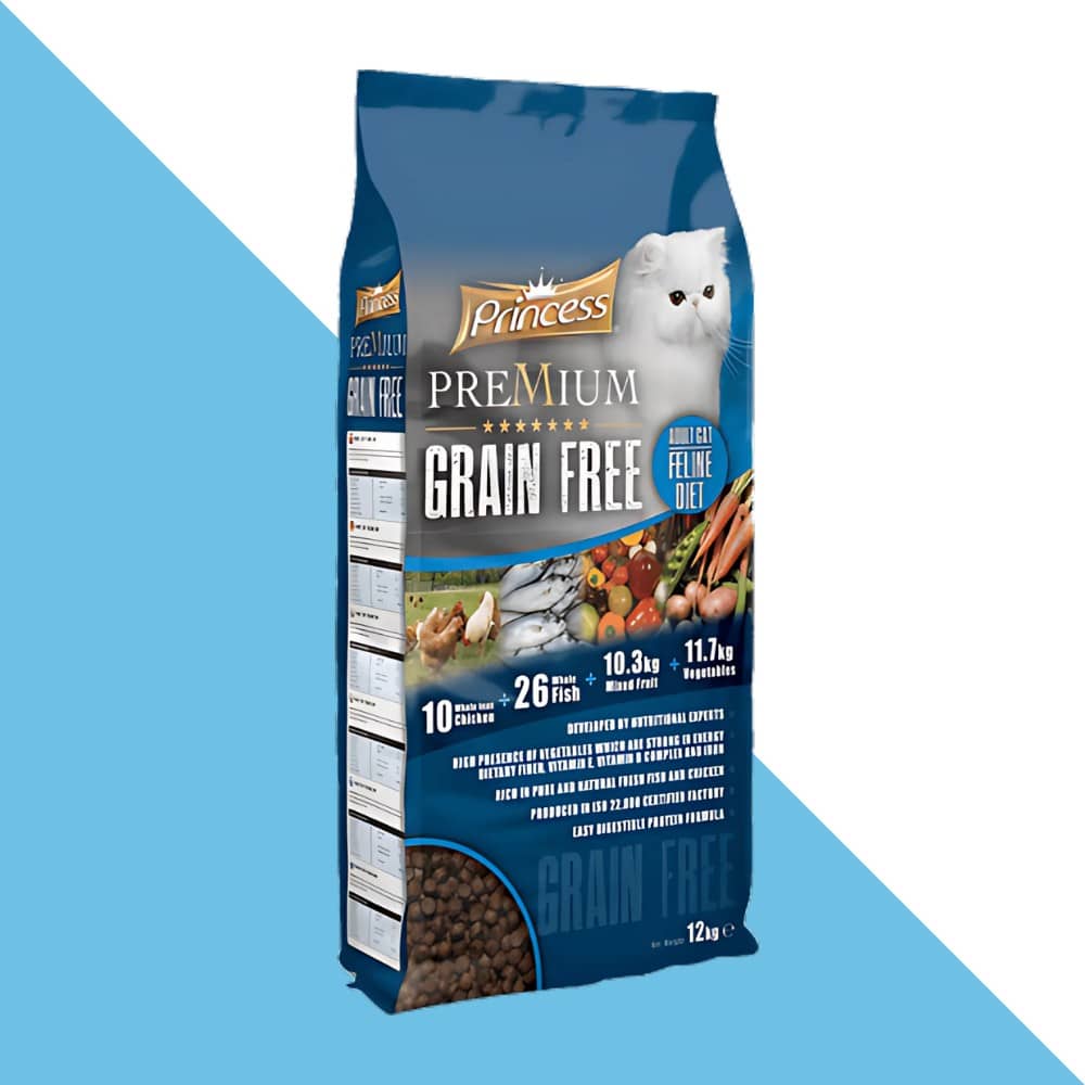 Princess Grain-Free הוא מזון מלא לחתולים בוגרים, המבוסס על חלבון מהחי (דגים ועוף), ללא דגנים וללא גלוטן – לעיכול קל ולבריאות כללית מיטבית.
