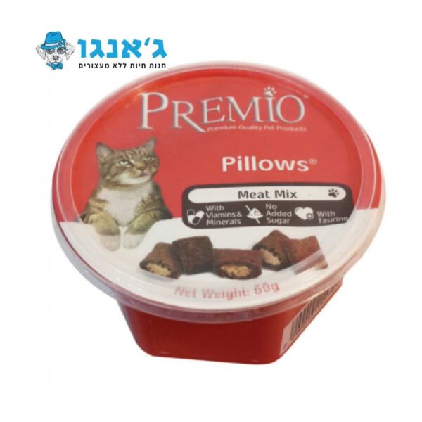 premio pillows מועשר בוויטמינים ובטעם שחתולים אוהבים, בטעמי מיקס לטעימות מוגברת.