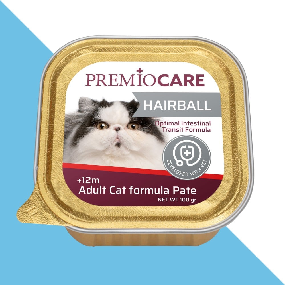 Premio Care Hairball הוא מזון רטוב איכותי במיוחד לחתולים בוגרים, שנועד לסייע בהפחתת היווצרות כדורי פרווה ולשפר את מעבר המזון במעיים. מבוסס על פורמולה שפותחה עם וטרינרים, המזון מתאים לשימוש יומיומי וטעים במיוחד לחתולים.