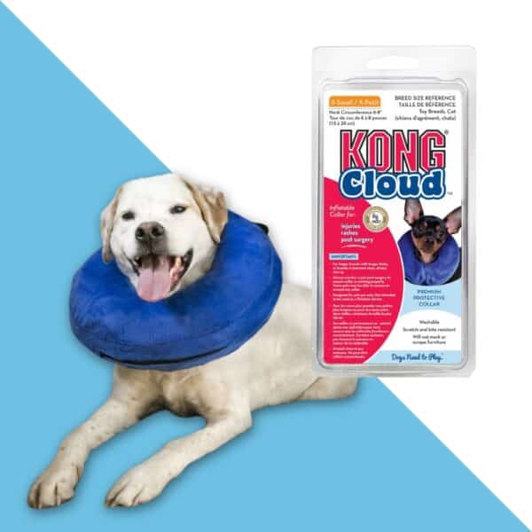 KONG Cloud Collar הוא קולר מתנפח נוח ועמיד המסייע במניעת גישה לפצעים, חתכים או אזורים רגישים בגוף הכלב, מבלי להגביל את שדה הראייה או התנועה שלו. בשונה מקולרים מסורתיים מפלסטיק (קונוס אליזבת), הקולר הרך והמתנפח מאפשר לכלב לאכול, לשתות ולנוח בנוחות מרבית.