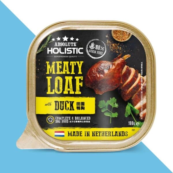 Absolute Holistic Duck Pâté הוא מזון רטוב פרימיום לכלבים, במרקם פטה רך ונימוח, עשוי מבשר ברווז טרי, ללא דגנים, ומועשר בויטמינים ומינרלים חיוניים. מתאים לכלבים בוגרים, כולל בעלי קיבה רגישה או אלרגיות לדגנים.