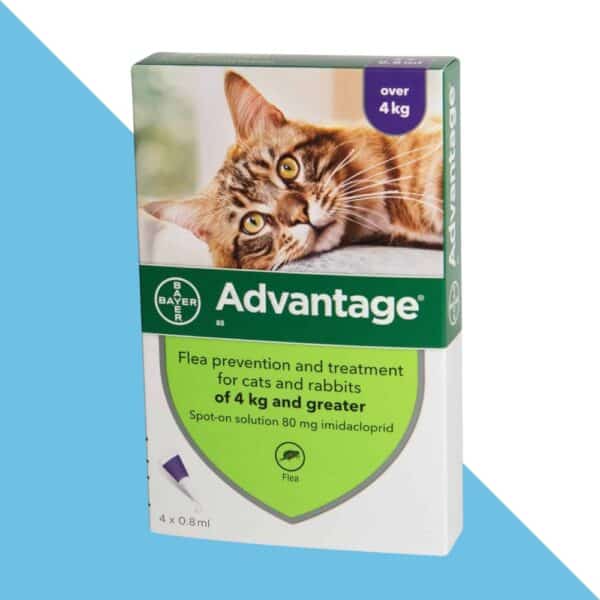 Advantage הוא טיפול נקודתי (Spot-On) מתקדם לחתולים מעל 4 ק"ג, המספק הגנה מהירה ויעילה מפני פרעושים – תוך 24 שעות בלבד! מתאים גם לארנבים.