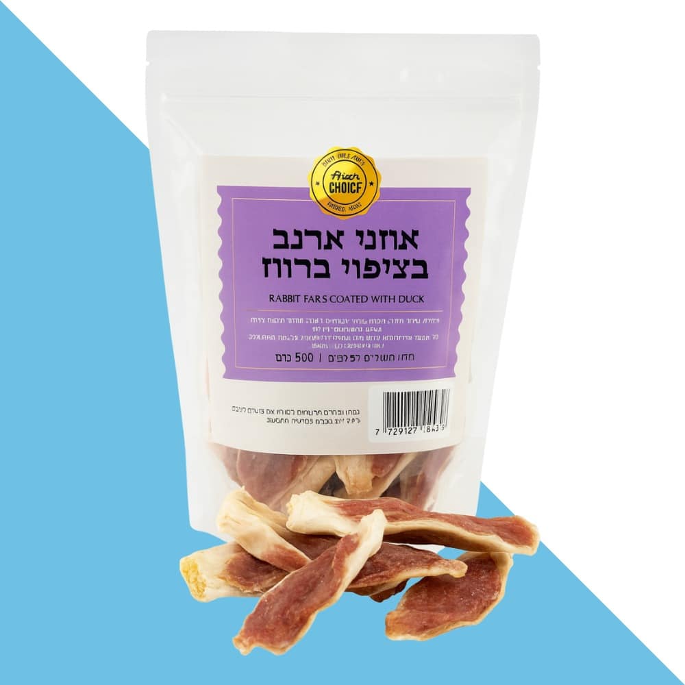 פינוק עשיר, טבעי וטעים לכלבים – אוזני ארנב מצופות בברווז איכותי, משולבות בטעמים עזים וניחוחות שמשגעים כל כלב 🦴. מתאים כחטיף לעיסת פרימיום או כתגמול בזמן אילוף. מקור מצוין לחלבון טבעי ומרקם שמסייע לניקוי השיניים ולשמירה על בריאות הפה.