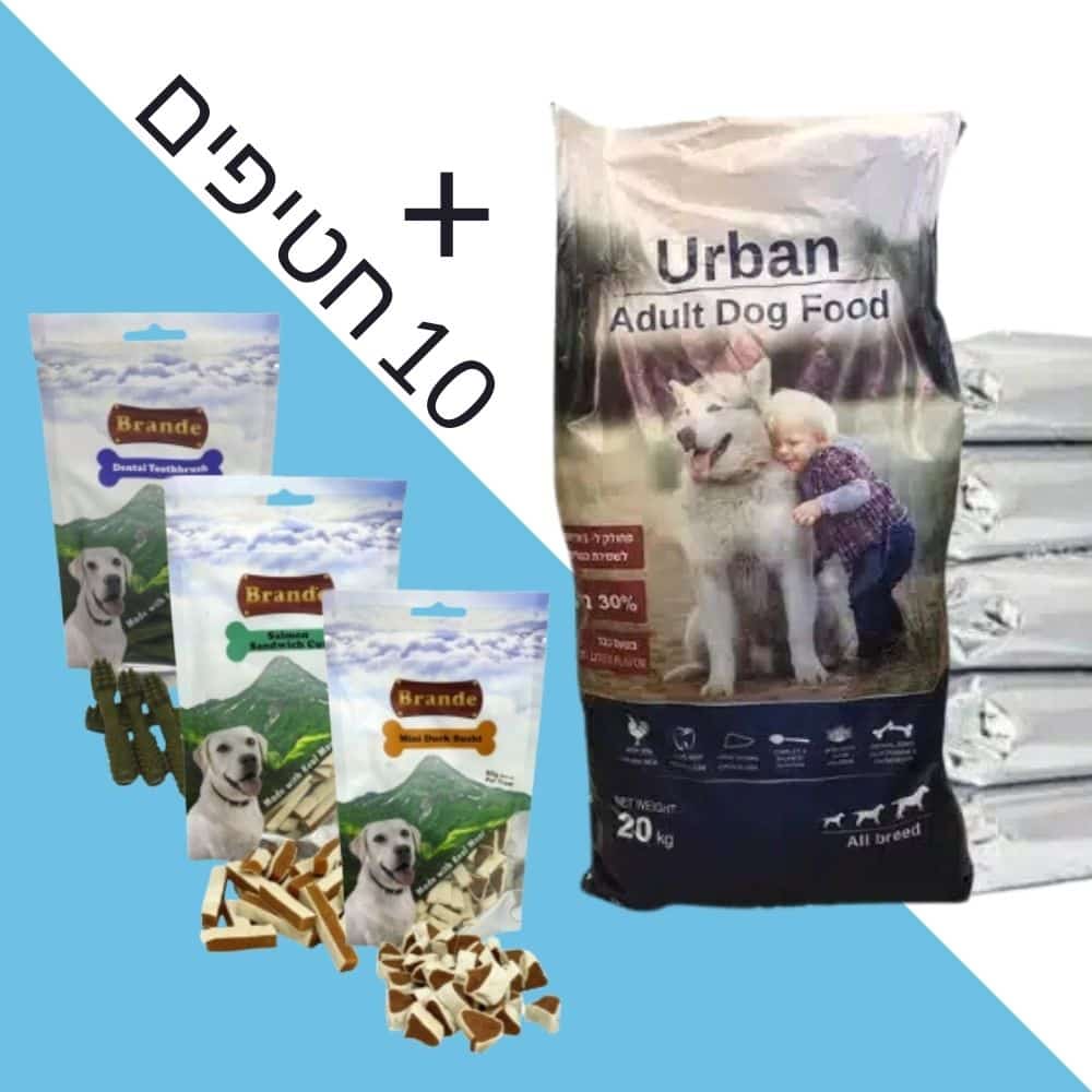 אורבן מזון יבש לכלב 20 קג מחולק + 10 חטיפים