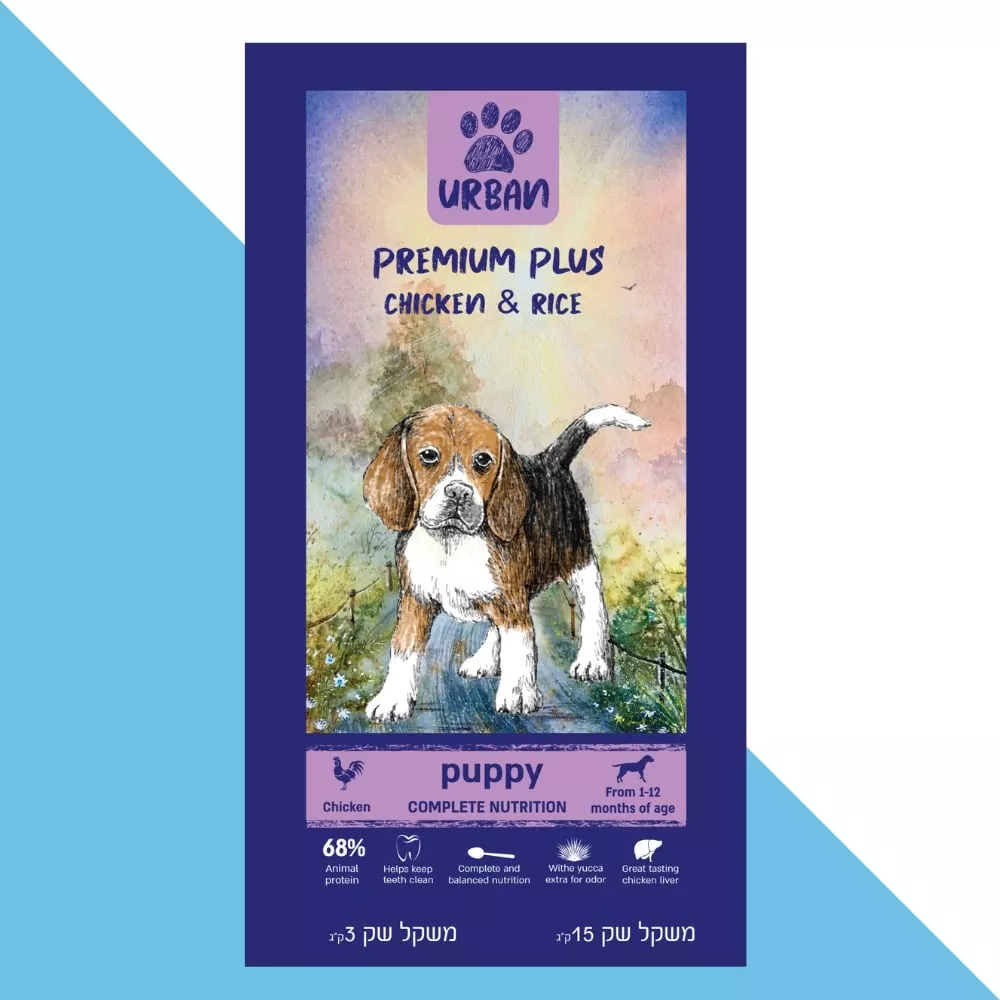 אורבן מזון איכותי לגורי כלבים מכל הגזעים עשיר בבשר עוף ואורז