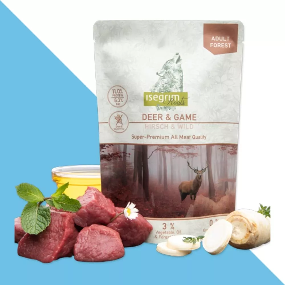 35% צבי, 35% בשר ציד, 27% ציר, 1.5% פטרוזיליה, 1% מינרלים, 0.3% עשבי יער, 0.2% שמן חריע.