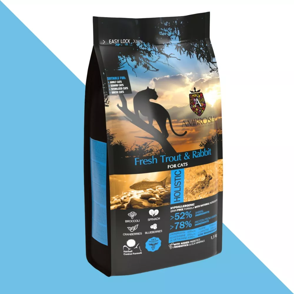 אמברוסיה לחתול סטרלייז/סניור/לייט – פורל וארנבת 1.5 ק"ג Ambrosia
