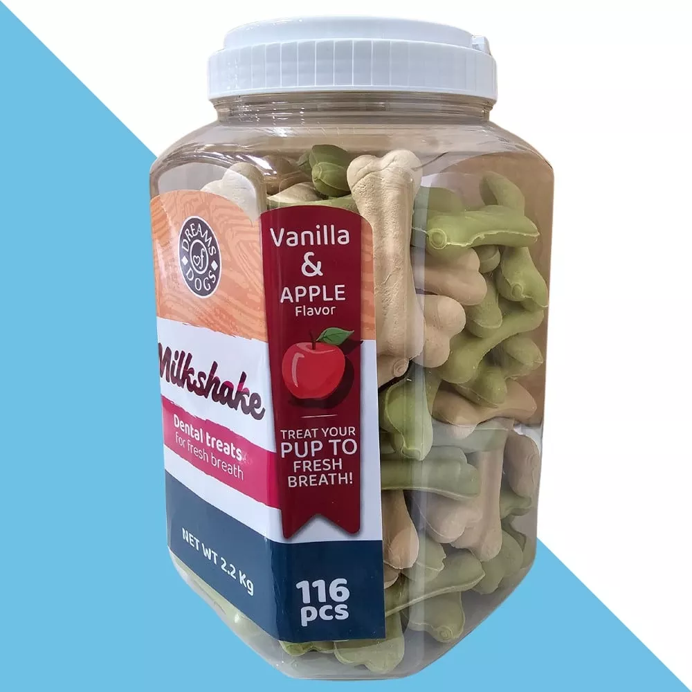 אריזת חיסכון ענקית של עצמות לעיסה דנטלים לכלב בטעם וניל ותפוח 2.2 ק"ג
