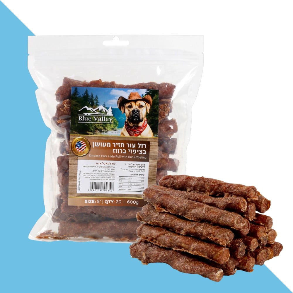 מארז גלילי עור חזיר מעושן בציפוי ברווז – Blue Valley (אריזת חיסכון 600 גרם)