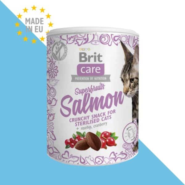 Brit Care Superfruits Salmon הוא חטיף חצי-רך המבוסס על בשר סלמון איכותי בשילוב פירות יער עשירים בנוגדי חמצון – לנשנוש שגם מפנק וגם מועיל לבריאות החתול שלך.