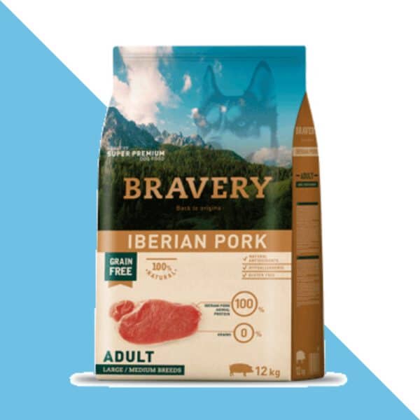 BRAVERY Iberian Pork – מזון איכותי לכלבים בוגרים עם נטייה לעלייה במשקל. מכיל חלבונים טבעיים ועשיר ברכיבים חיוניים לתמיכה בבריאות כללית.