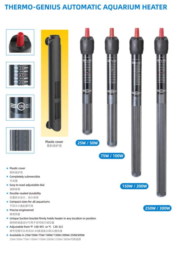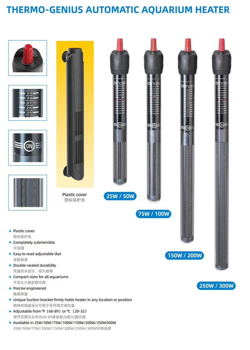 • מתאים לנפחים גדולים: עוצמה של 200W המתמודדת בקלות עם אקווריומים עד 200 ליטר.