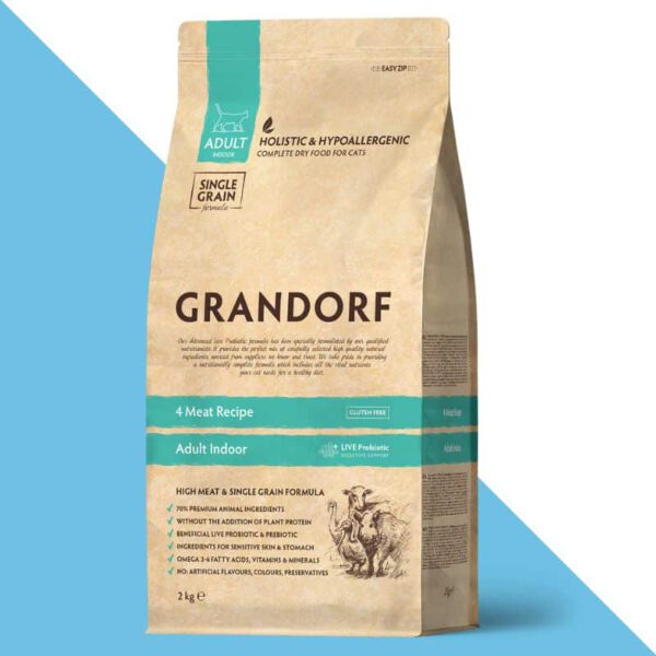 גרנדורף 4 סוגי בשר לחתולים בוגרים 2 ק"ג אינדור GRANDORF