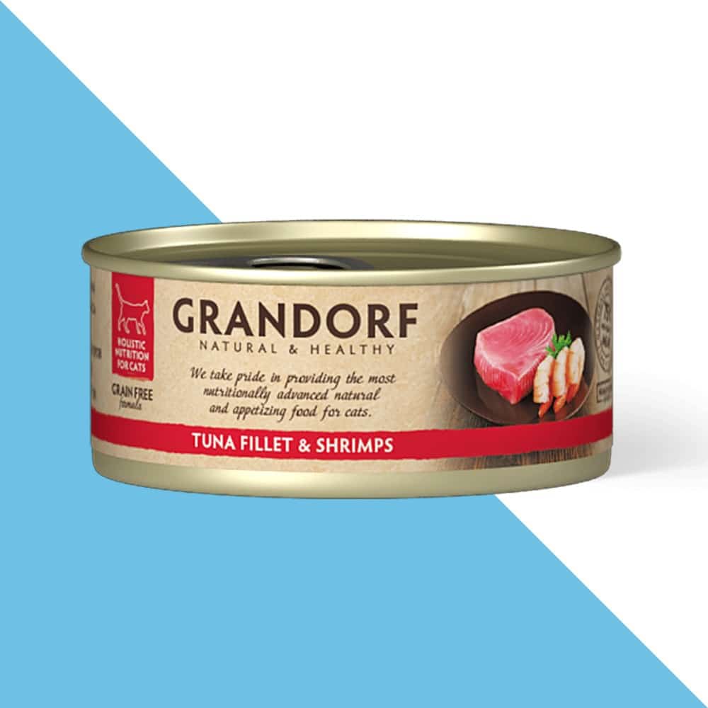גרנדורף מעדן פילה טונה ושרימפס לחתול | 70 גרם
