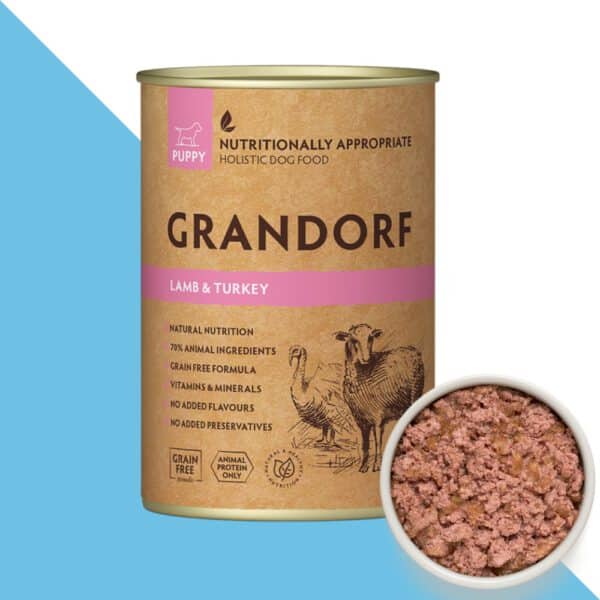 גרנדורף שימורי כבש והודו 400 גרם לגורי כלבים GRANDORF