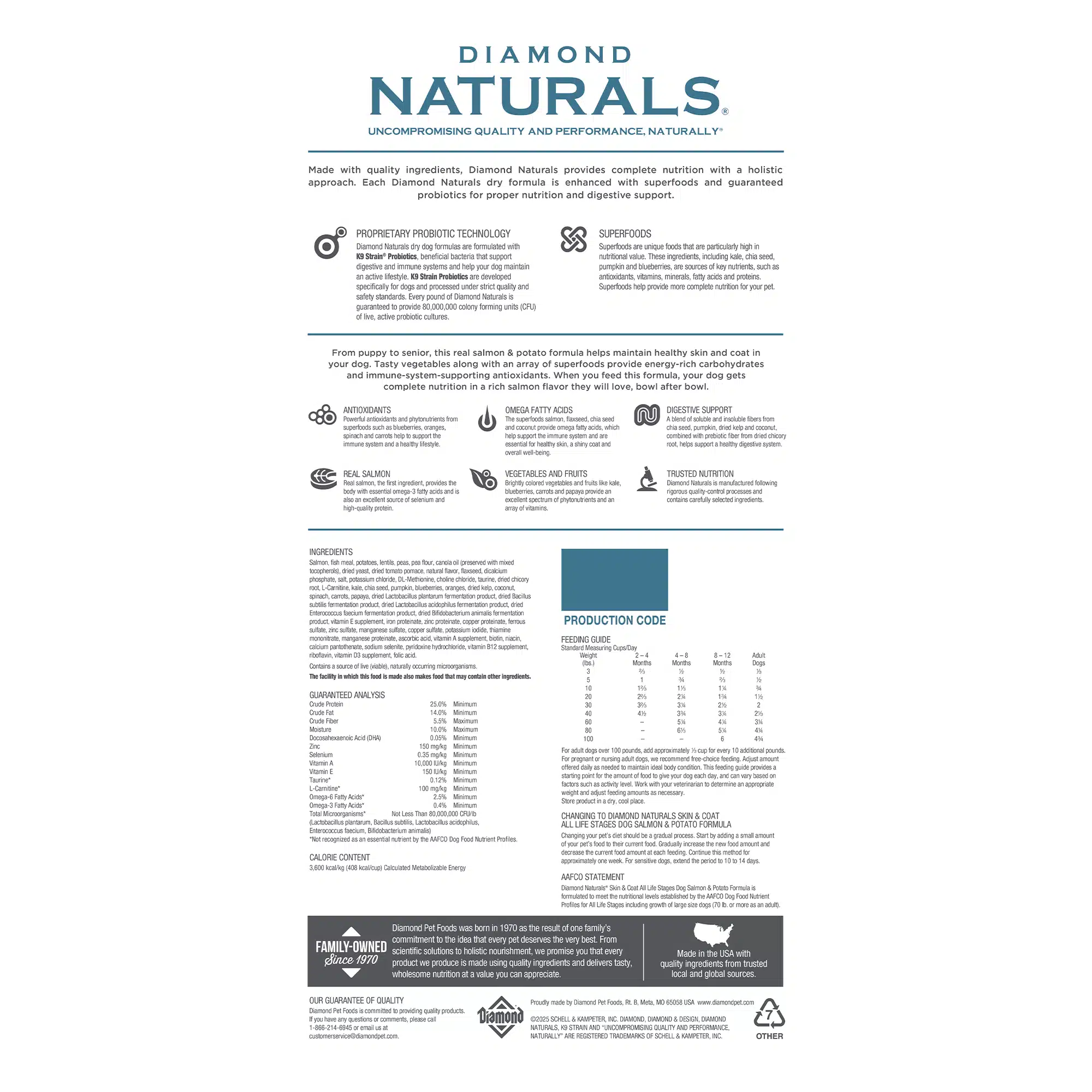 דיימונד נטורלס סלמון ותפוח אדמה – פתרון פרימיום לעור בריא ופרווה מבריקה (15 ק"ג)