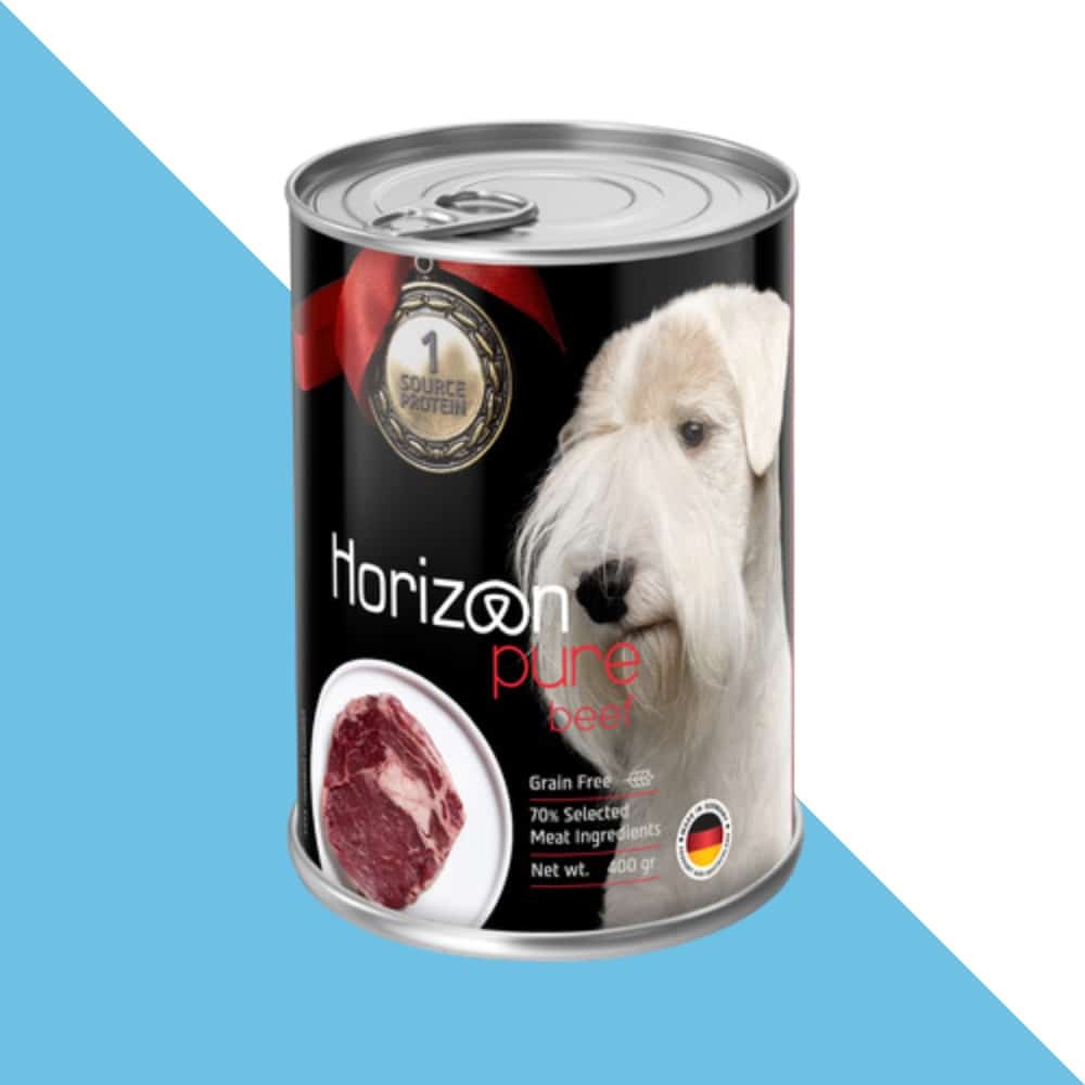מזון רטוב איכותי לכלבים מסדרת Horizon Pure – מיוצר מ־70% רכיבי בשר איכותיים של בקר טהור, מתאים במיוחד לכלבים הזקוקים לחלבון יחיד (Single Protein) ולתזונה טבעית, בריאה ומאוזנת.