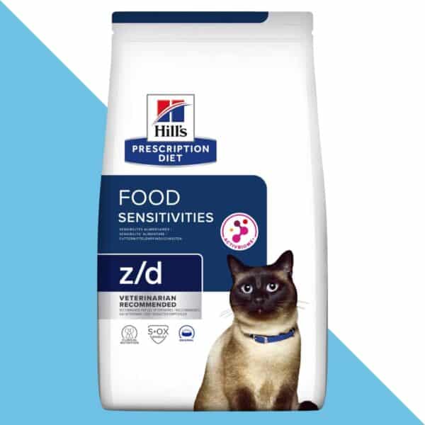 Hill’s z/d פותח במיוחד כדי לספק לחתולים רגישים תזונה היפואלרגנית, קלה לעיכול, המבוססת על חלבון שעבר הידרוליזה – כך שהמערכת החיסונית אינה מזהה אותו כ"פולש".