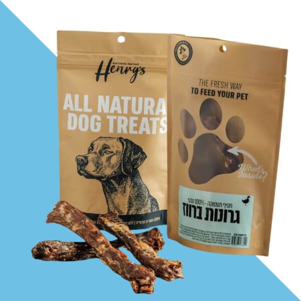 חטיף לכלבים העשוי מ-100% גרון ברווז מיובש, מציע חווית לעיסה טעימה ומזינה. עשיר בחלבון וללא חומרים משמרים, מושלם לפינוק יומיומי וכצ'ופר לפעילות.