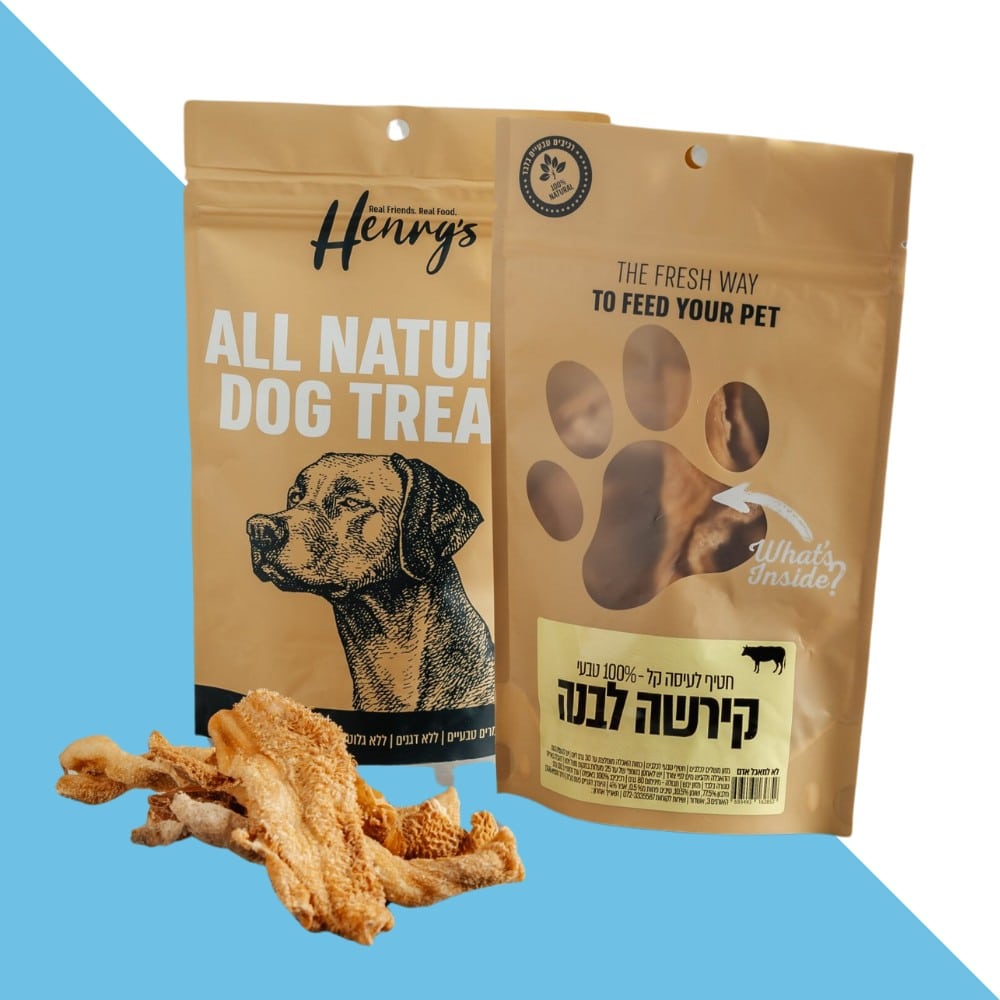 פינוק טעים ובריא מחכה לכלבך עם הנריס קירשה לבנה מבית Henry's . החטיף הטבעי עשוי 100% קירשת בקר מבאפלו, עשיר בערכים תזונתיים, חומצות שומן אומגה וויטמינים. מושלם לתמיכה במערכת העיכול וחיזוק המערכת החיסונית, תוך הקניית חווית לעיסה קראנצ'ית שכלבים אוהבים.