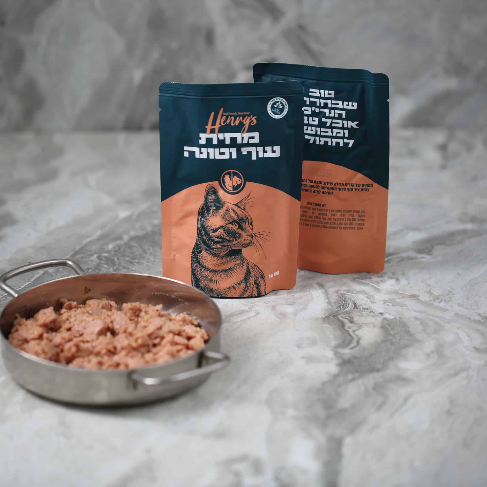 מחית מזון טבעי לחתולים מבית HENRYS – עוף וטונה 100 גרם