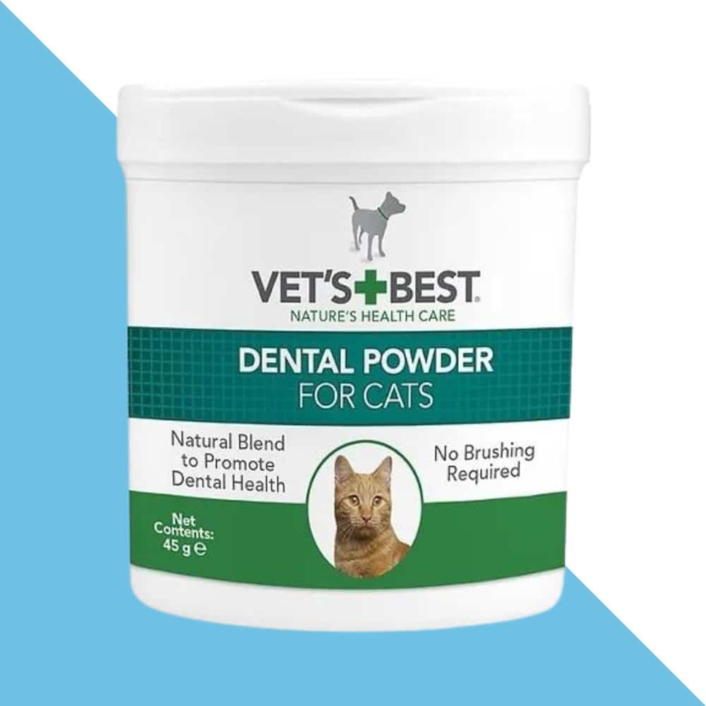 אבקת לניקוי השיניים הטובה ביותר של vet's best עבור חתולים המכילה תערובת טבעית של אצות חומות ואצות ספירולינה