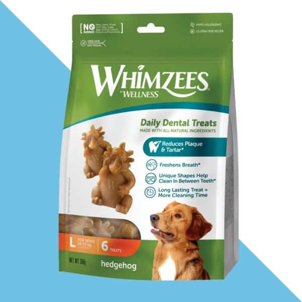 Whimzees Hedgehog L – הדרך הטעימה והכיפית לשמירה על שיניים בריאות וחיוך מושלם לכלבך! 🐶🦷🦔