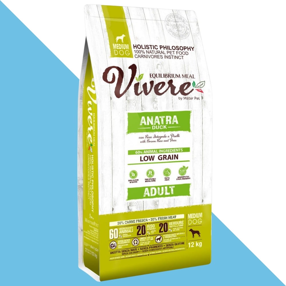 מזון יבש הוליסטי מלא לכלבים בוגרים מגזע בינוני, המבוסס על חלבון איכותי מבשר ברווז טרי. הפורמולה פותחה באיטליה תוך הקפדה על איזון תזונתי מושלם, עיכול קל ורמת טעימות גבוהה במיוחד, המתאימה גם לכלבים בררנים.