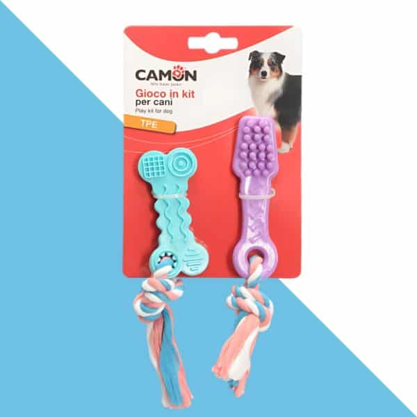 פנק את הגור שלך עם זוג נשכני גומי Camon – צעצוע משעשע ובריא לשמירה על שיניים חזקות ונקיות! 🐾🦴🪥