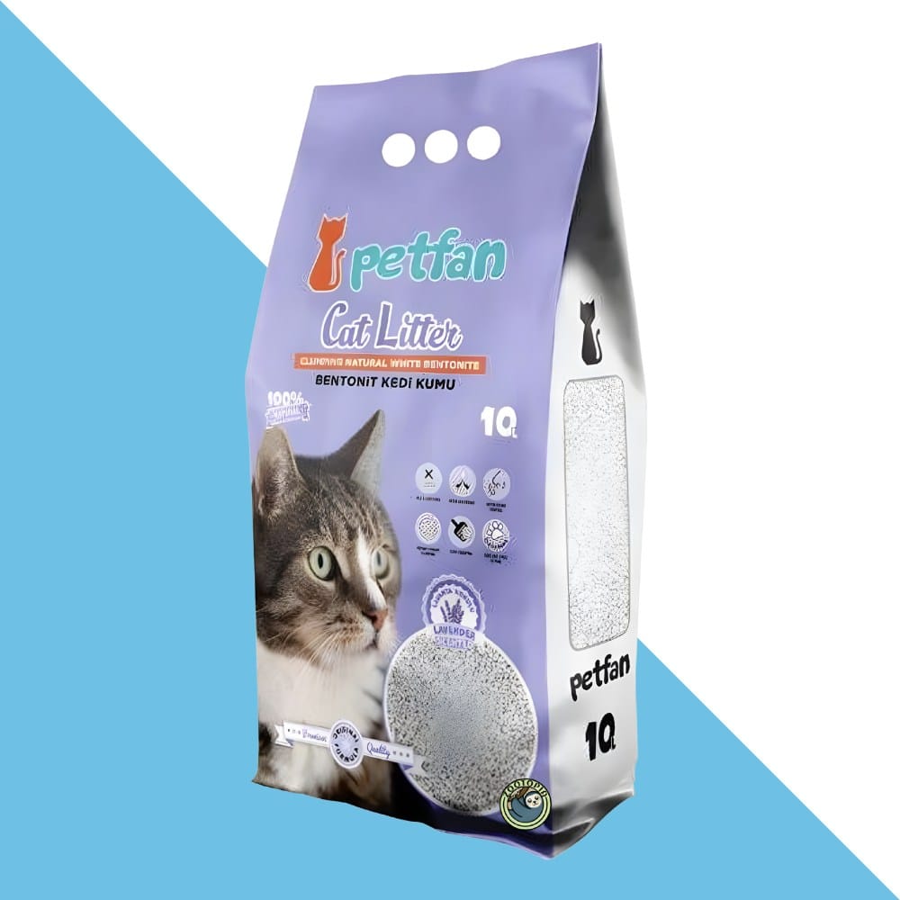 חול מתגבש לחתולים פט פאן (Petfan) מבנטוניט לבן בניחוח לבנדר – 10 ליטר של ניקיון ורוגע