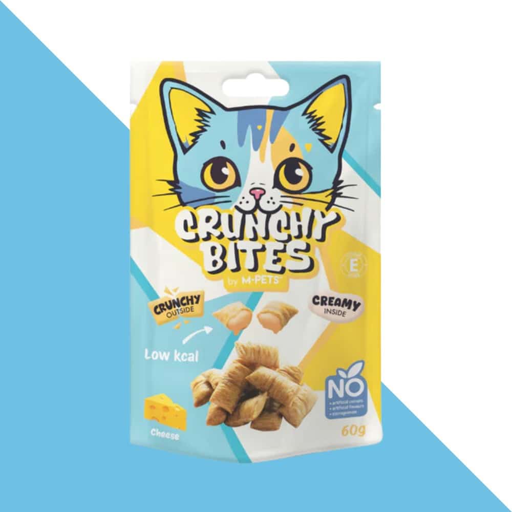 חטיף כריות קראנץ’ לחתולים M-PETS בטעם גבינה 60 גרם – חוויית פינוק אירופאית מושלמת