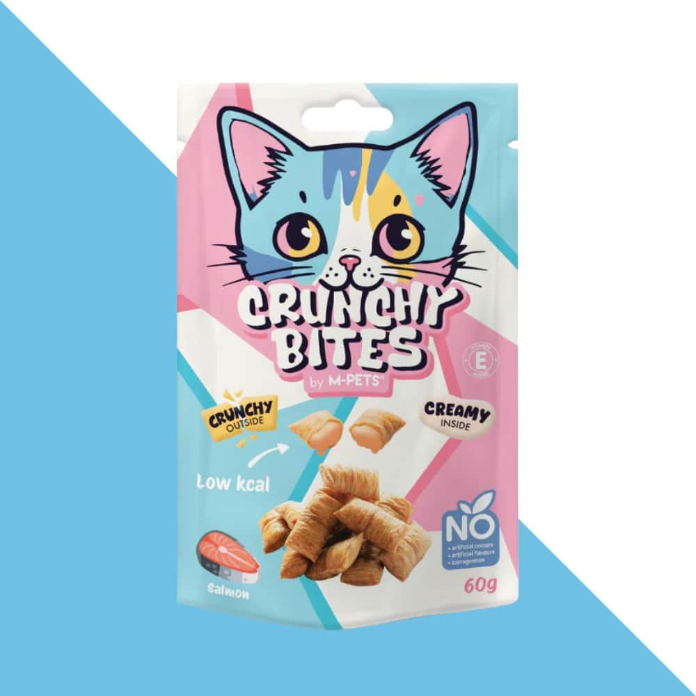 חטיף כריות קראנץ’ לחתולים M-PETS בטעם סלמון 60 גרם – חוויית פינוק אירופאית מושלמת