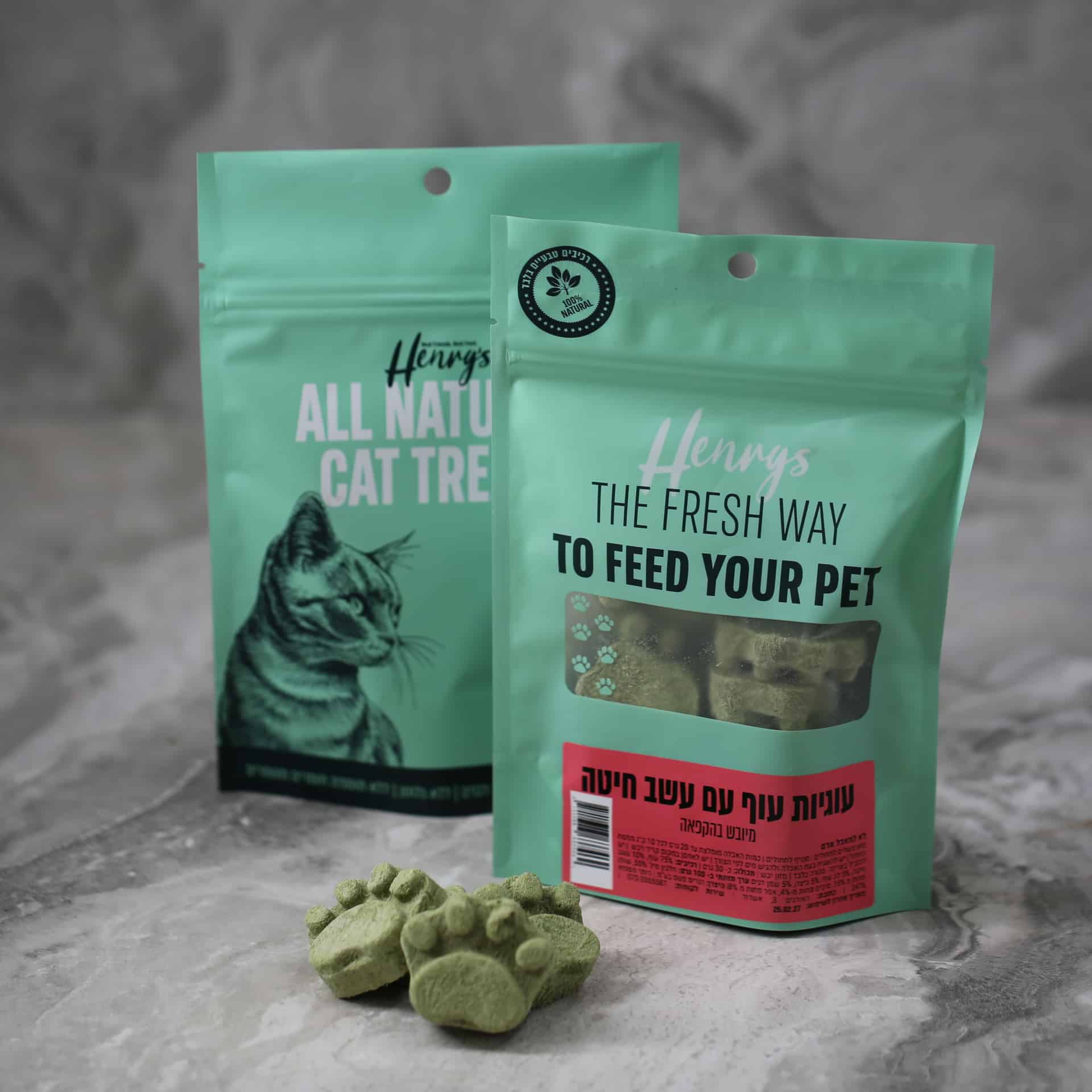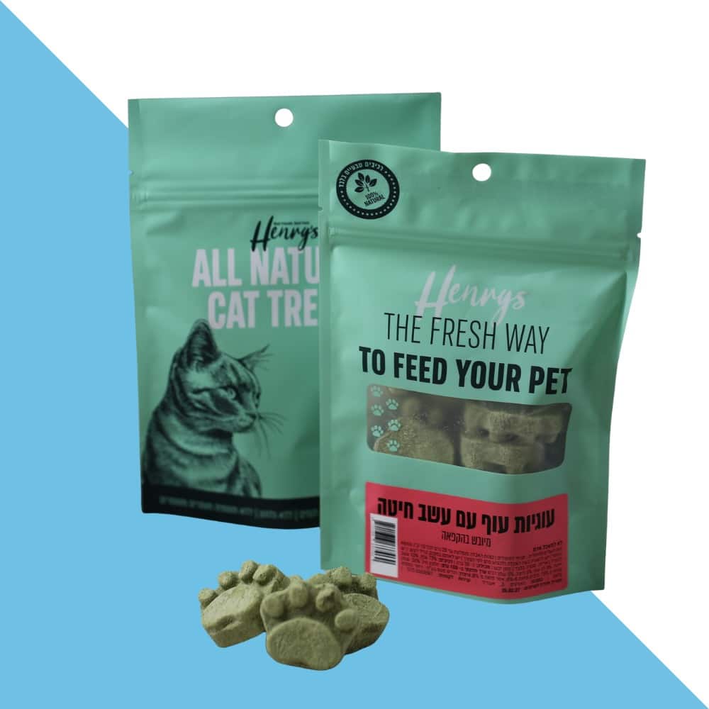 חטיף לחתולים מיובש בהקפאה מבית HENRYS – בטעם עוף עם עשב חיטה