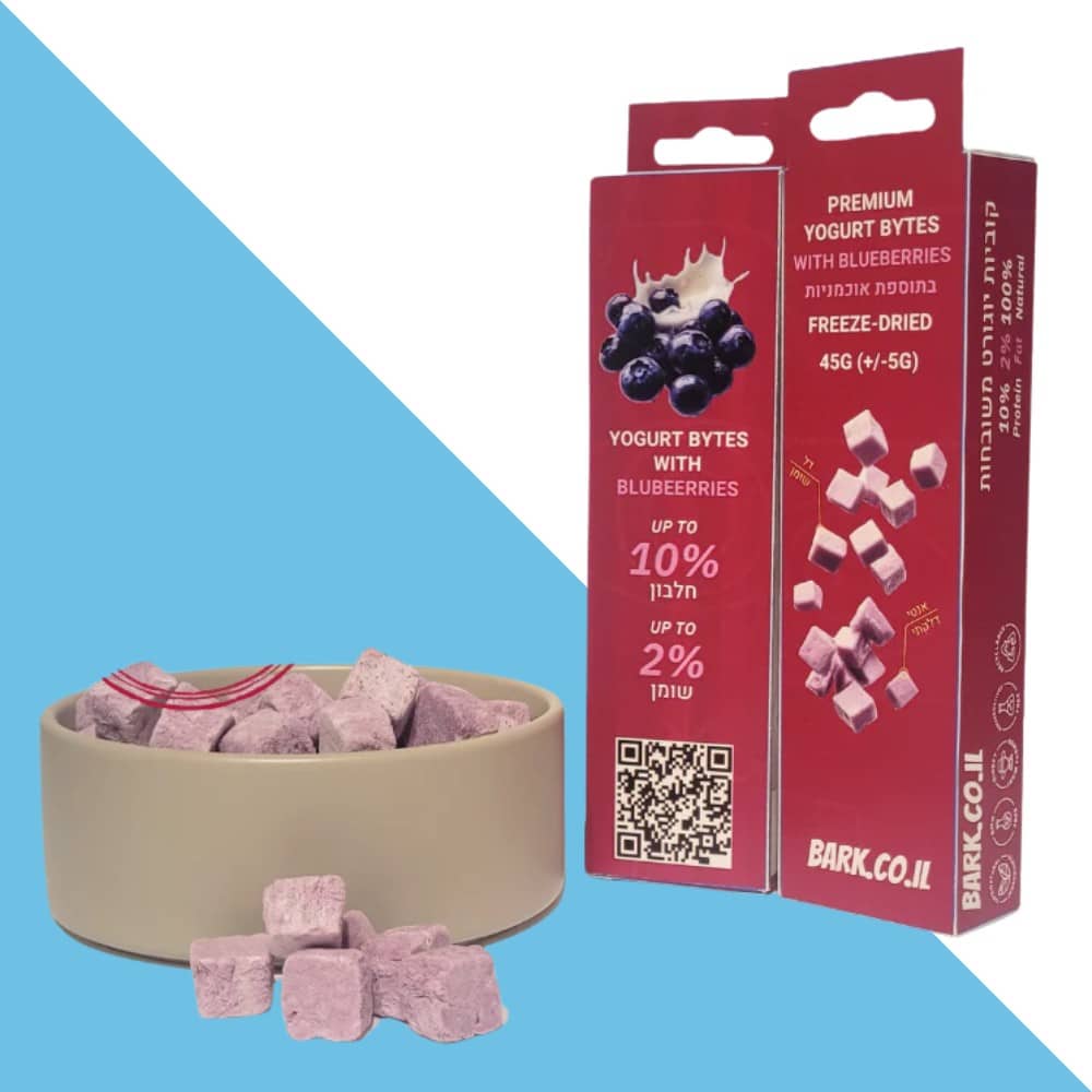 חטיף לכלב ולחתול קוביות יוגורט עם אוכמניות 100% טבעי 45 גרם BARK