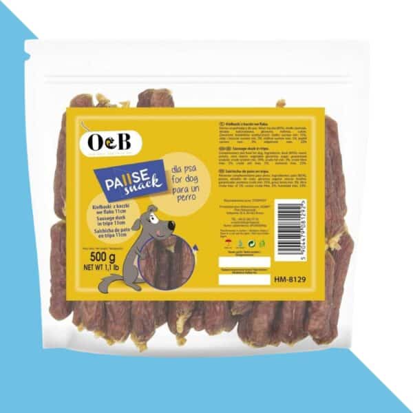 חטיף נקניקיות ברווז O&B (אריזת 500 גרם)