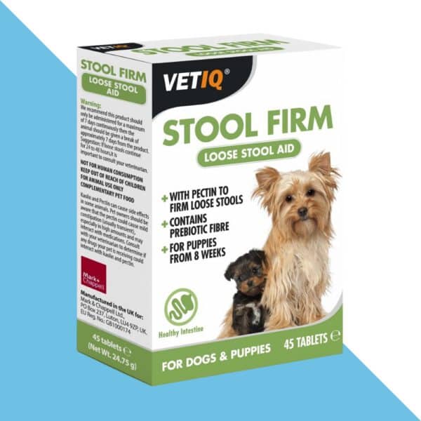 VetIQ Stool Firm הן טבליות טעימות ויעילות המסייעות לחזק את יציבות הצואה אצל כלבים וגורים מעל גיל 8 שבועות. נוסחה ייחודית זו משלבת פקטין ודלעת, המסייעים להסמיך את הצואה ולשפר את בריאות מערכת העיכול.